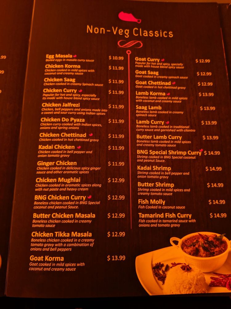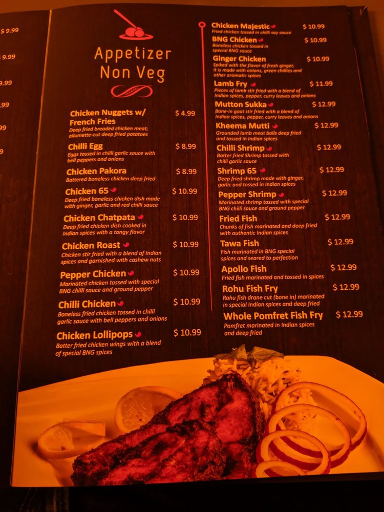 Introducing the menu at Biryani-N-Grill, located in Houston, TX, offering a wide range of non-veg and veg appetizers, soups, and authentic Indian dishes. Standouts include Apollo Fish, Baby Corn Manchurian, Chicken 65, Chilli Paneer, and Chicken Biryani. Customers rave about the creamy Butter Chicken and flavorful Chicken Tandoori. Reviews commend the cozy ambiance and attentive service. Some feedback notes on the level of oil in certain dishes but overall consistency and authenticity are praised. The menu caters to various preferences with vegan options available. Don't miss the opportunity to savor the best Samosas in town paired with Mulligatawny soup. Enjoy the flavors of India at Biryani-N-Grill, a must-visit spot for delicious Indian cuisine.